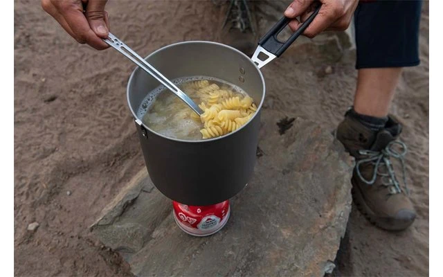 Ein Löffel auf der einen Seite und auf der anderen ein Düsen- und Kabelwerkzeug zur Wartung des MSR Flüssigbrennstoffkochers. Aus robustem, extrem strapazierfähigem Edelstahl.