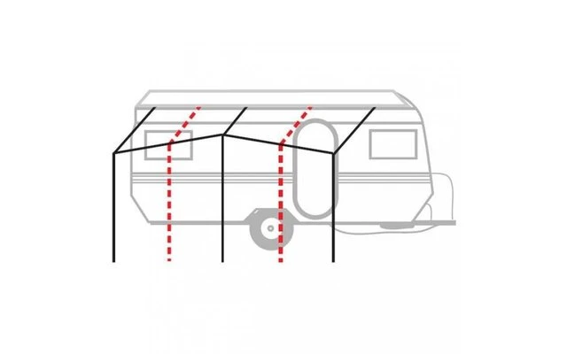 Ab einer Vorzeltgröße ab 910 cm und Verwendung bei starken Witterungseinflüssen empfehlen wir zusätlich mindestens 2 Dachhakenstangen und Senkrechtstützen.