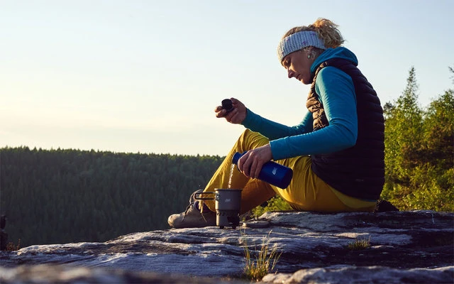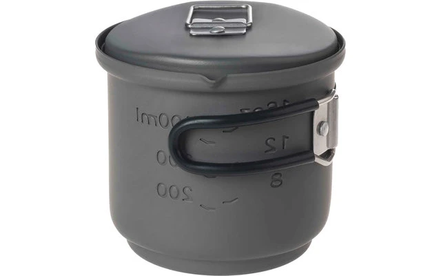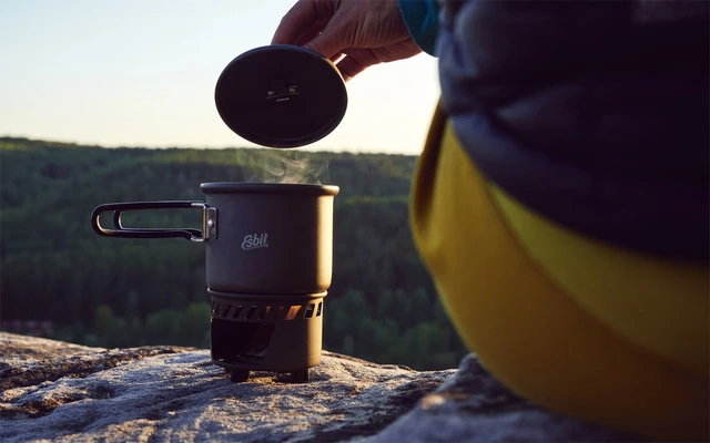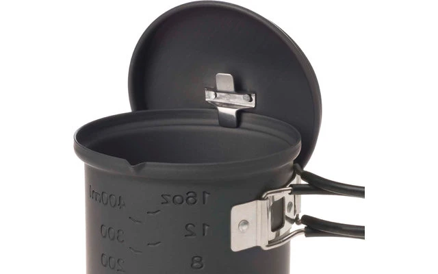 Wenn Packmaß eine Rolle spielt, ist dieses kompakte, stapelbare Kochset die ideale Wahl. Der Topf, bestehend aus hochwertigem Aluminium, fasst ca. 585 ml und ist ausgestattet mit einer Volumenanzeige in Oz und Liter. Der Stand aus extrem leichtem Aluminium lässt sich platzsparend im Topf transportieren. Besonders praktisch: Die Deckelaufhängung sowie die platzsparenden Klappgriffe aus Edelstahl. Geliefert im praktischen Netzbeutel und zu befeuern mit 14 g Esbit Trockenbrennstoff-Tabletten (nicht im Lieferumfang enthalten).
