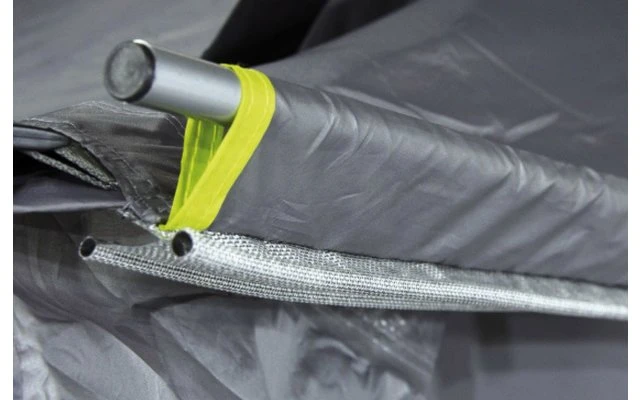 Das Vordach kann durch drei verschiedene Befestigungsmöglichkeiten am Fahrzeug angebracht werden. Der Doppelkeder mit 5,8/7,2 mm ist passend für alle gängigen Kederschienen. Die Klettbandschlaufen können an der Dachreling fixiert werden. Eine weitere Möglichkeit ist das Einziehen des Schleusenstabs in den Hohlsaum, der mittels Klemmen oder Abspannleinen fixiert werden kann. Das Trento ist für den schnellen Einsatz geeignet und nimmt wenig Transportgewicht sowie Volumen in Anspruch.